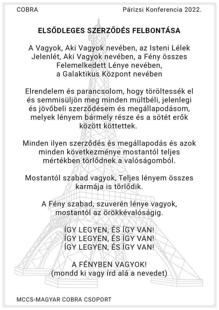 Megj.: A facebook-ot az Eseménykor a Fényerők le fogják kapcsolni, de a Telegram pl. meg fog maradni, ahogy azt Cobra a legutóbbi, Párizsi Felemelkedés Konferencián is közölte. Ráadásul a facebook állandóan törli a csoportjainkból a bejegyzéseket, nem enged posztolni, elveszi az ott lévő oldalaink tulajdonjogát, ezért úgy döntöttünk, hogy a Telegramon létrehozunk egy új Magyar Cobra Csoportot.